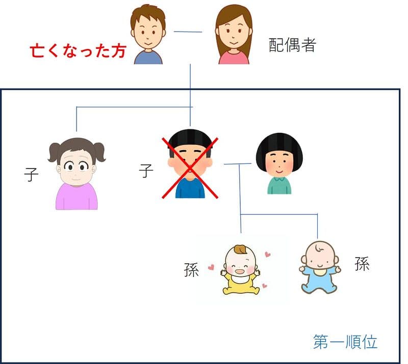 - 第1順位:直系卑属(子、孫、ひ孫、・・・)