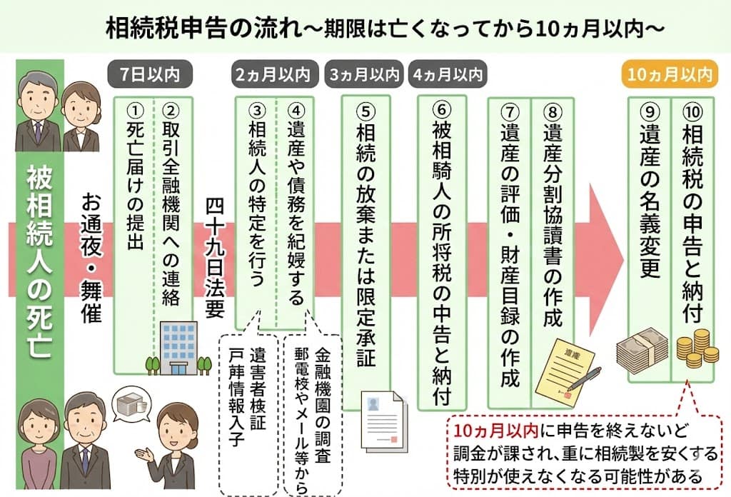 申告も納税も「相続開始後10カ月以内」が期限です。