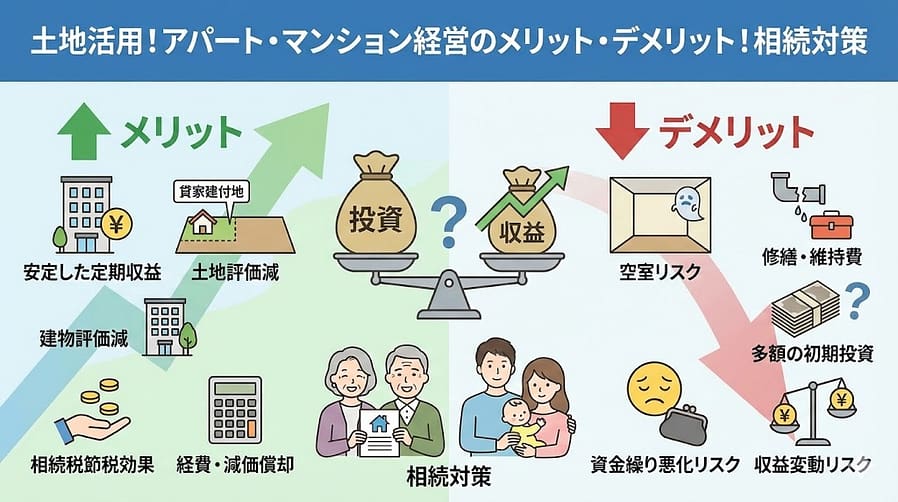 アパート・マンション経営は、土地の活用で有効な方法とされていますが、メリットも大きいですが、デメリットも大きいです。