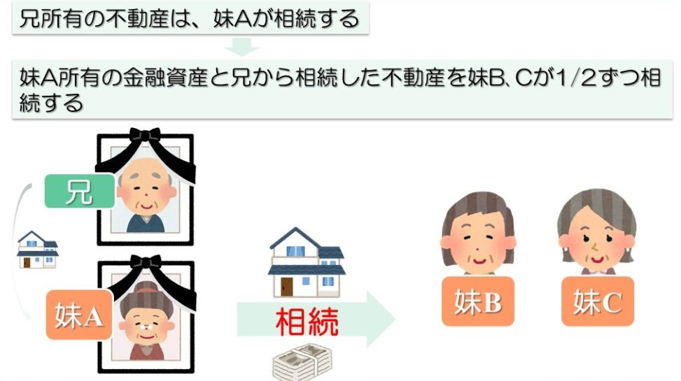 - 兄の不動産 ➡ 亡くなった妹Aが相続する(形をとる)
