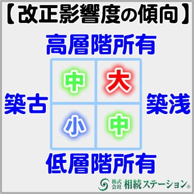 これらは「実勢価格(売買価格)は高いが、従来の路線価評価だと土地の持分が小さいため評価が安くなる」という特徴がありましたが、今後はそのメリットが薄れることになります。
