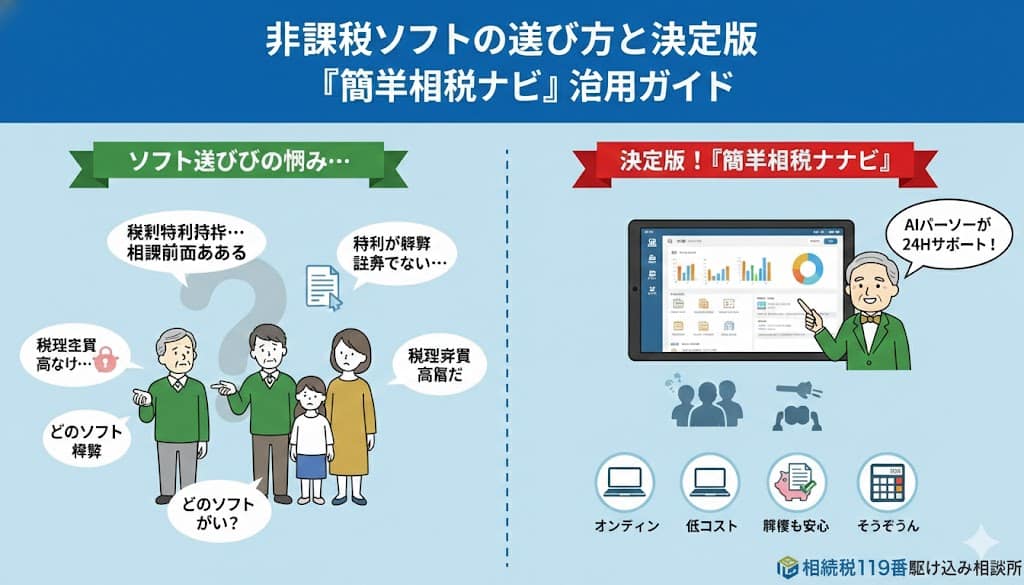 しかし、ソフト選びを間違えると、使いこなせなかったり、必要な機能が足りなかったりと後悔することにもなりかねません。 本記事では、相続税ソフトの選び方のポイントから、初心者でも安心して使える決定版ソフト**『簡単相続ナビ』**の活用法までを徹底解説します。