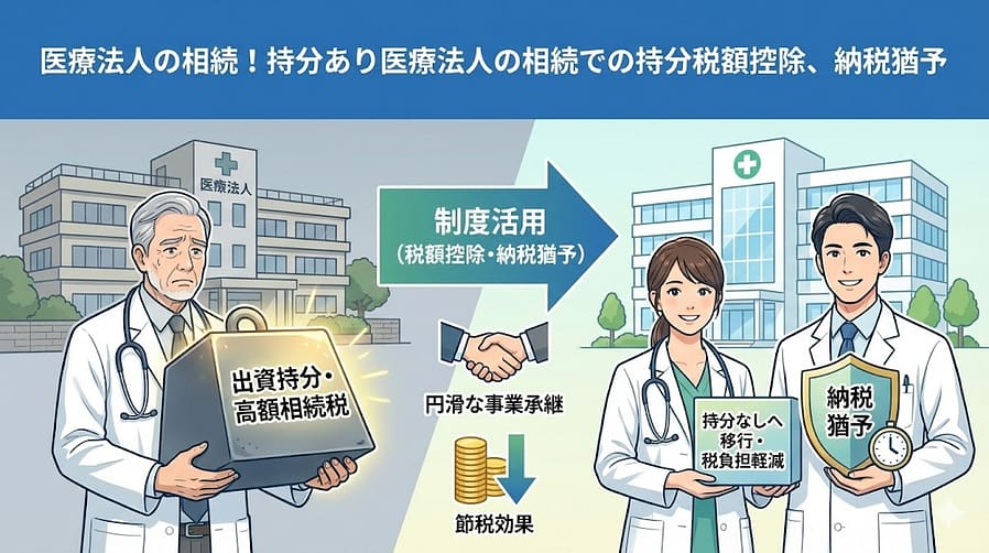 医療法人の相続!持分あり医療法人の相続での持分税額控除、納税猶予