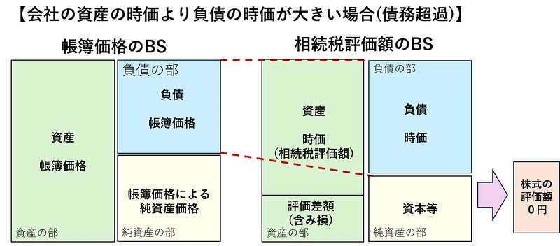 もし、元々純資産が少ないない会社であれば、相続税上の株価評価がゼロになるということもありえます。