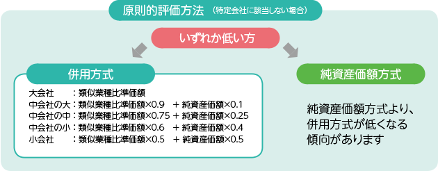 併用方式は、①の類似業種比準方式と②の純資産価額方式の混合です。